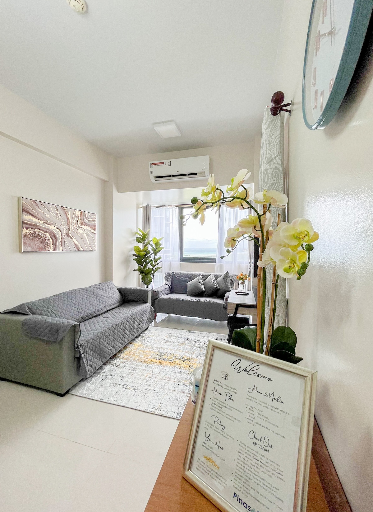 Enjoy a stylish experience at this centrally located place. Relax in this entirely cozy, modern and vibrant condo unit that is conveniently located near Mactan International Airport. Where it is close to everything like restaurants, coffee shops, laundry shops, malls and supermarket. - 3-5 minutes away from Mactan Airport - High-Speed Internet up to 200 Mbps - 65 inches TV with free Netflix - 1 Bedroom w/ 1 queen-size bed & 1 Foldable double size bed - Washing Machine -Fully equipped kitchen