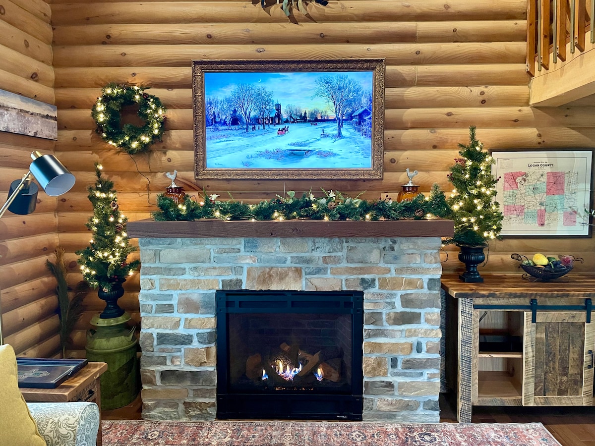 Located on 66 acres of rolling farmland and wooded countryside, this restored, 19th century log cabin is rustic but not the least bit primitive. A massive stone fireplace makes relaxing in the winter cozy. Enjoy your morning coffee along with a beautiful view of Ohio farmland from the screened-in porch. Jump into the outdoor shower or hot tub after a day of hiking or shopping in nearby Yellow Springs. Centrally located, the Cabin is just 20 minutes from Dayton and 50 minutes from Columbus.
