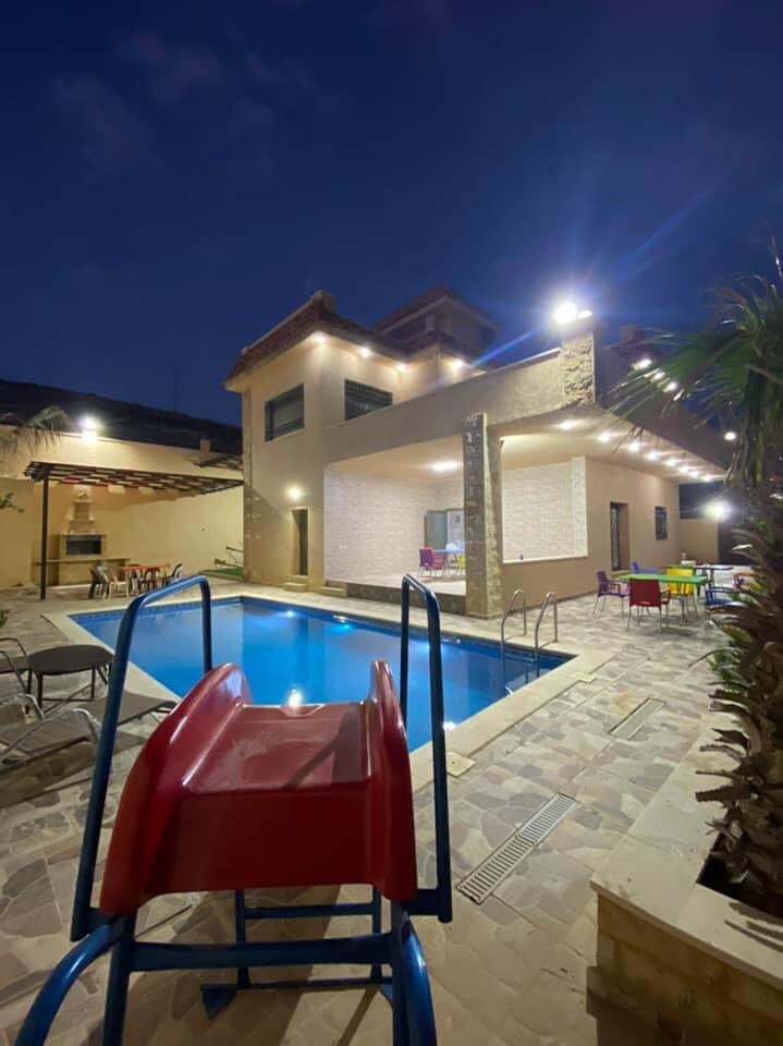 Relax at this new and gated upper-level villa far away from the city - Short drive to Ma'in Hot Springs, Mount Nebo, and town (Madaba) - Fully equipped home/kitchen - Built in 2021, new furniture, and appliances. - Private and large balcony with breathtaking views - Large living room - 2 bedrooms (3 beds: 1 queen and 2 single) - 1.5 Bathrooms - TV, Air conditioning (in each bedroom) - Large area for parking (covered and gated) - Very safe area and Staff are available 24/7.