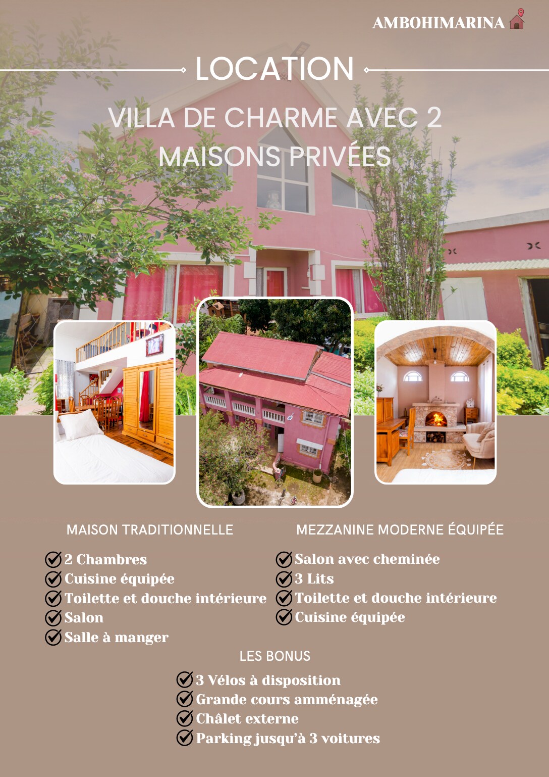 Vous êtes à la recherche d'une villa tranquille, charmante et au plus proche des paysages du haut plateau ? Nous vous proposons une villa paisible à proximité des rizières dans une résidence sécurisée à 15min de l'aéroport. Fort de son inspiration venant tout droit de Bali, vous tomberez naturellement sous le charme de cette villa à 3 chambres, au living-room spacieux et au jardin fleuri. Logement unique sur Tana, il est entièrement équipé avec une Wifi fonctionnelle durant votre séjour.