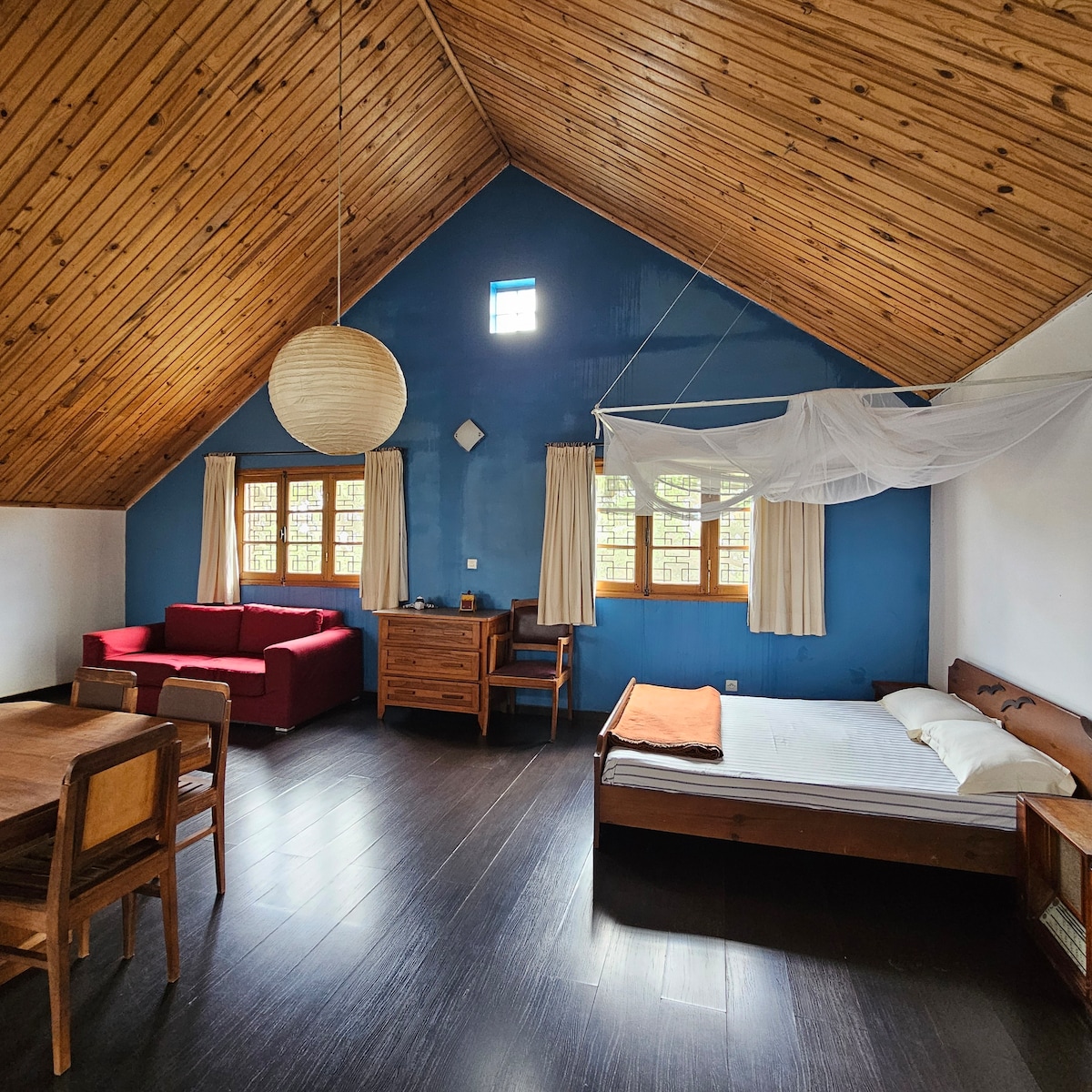 A beautiful self-catering cottage right by the shore of Lake Mantasoa. A peaceful getaway from the city, only 60kms from Tana. Fully equipped kitchen, hot water, large bathroom. A cosy wood stove to keep you warm on those drizzly days. Strictly no smoking or noisy parties. All profits help support our community school onsite.