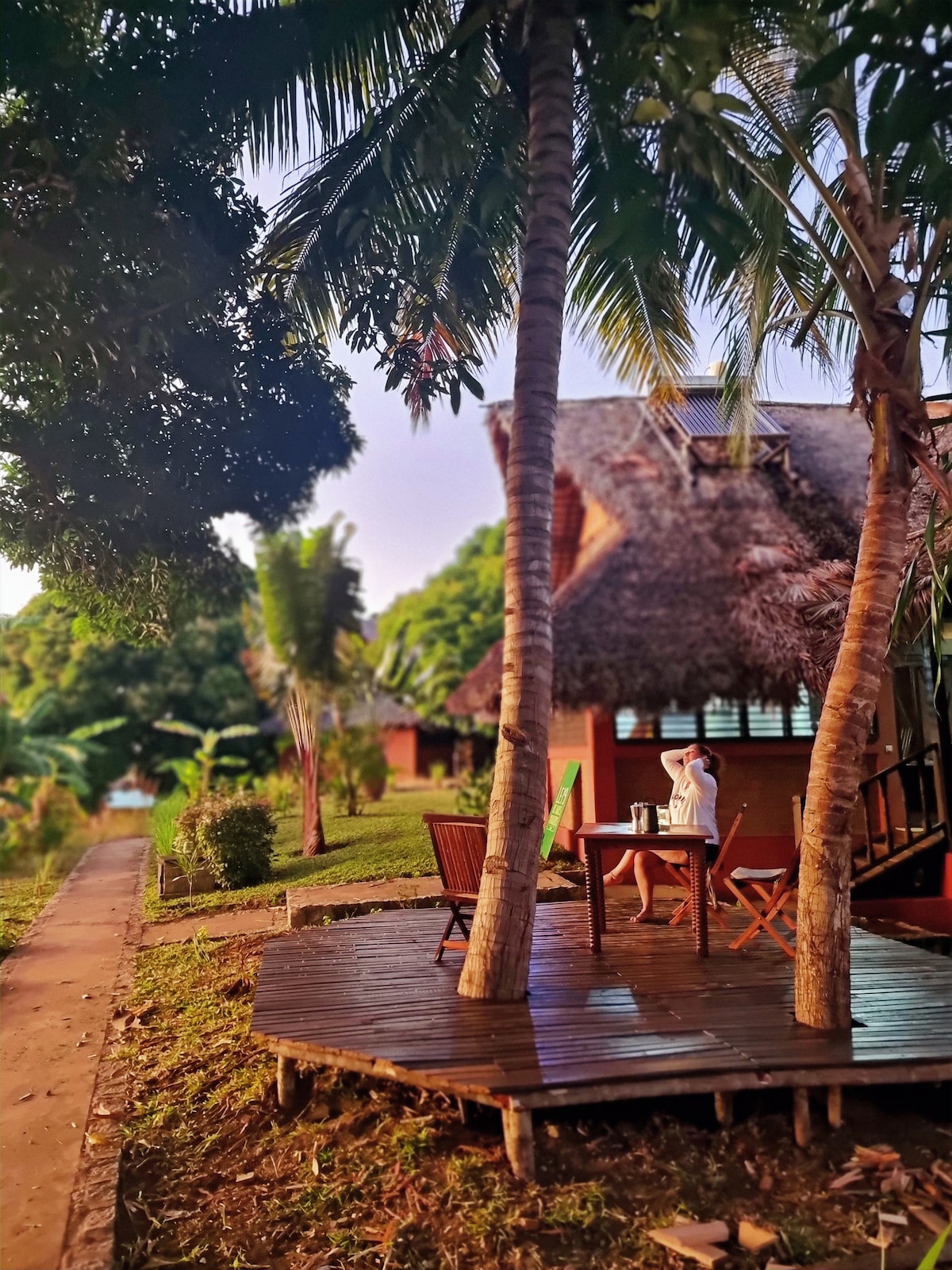 Un cadre calme, relaxant et reposant, idéal avant ou après votre vol, ou en étape pendant votre circuit touristique à Madagascar. Une pause et détendez-vous dans cette endroit paisible. A 5 à 10 minutes à pieds de l’aéroport.