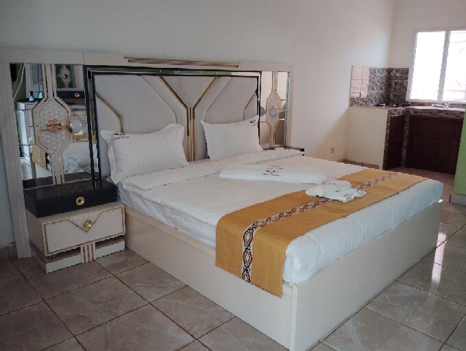 Ce logement moderne, paisible et sécurisé vous assure un séjour agréable que vous soyez en famille, entre amis, en amoureux, entre collègues. Vous pourrez admirer, à travers ses grandes baies vitrées, les magnifiques palmiers et autres plantes vertes qui feront sans doute le plaisir de vos yeux. Un jacuzzi vous offrira un moment de relaxation. Une grande cuisine moderne et toute équipée sera à votre disposition si l'envie de préparer de bon petits plats vous vient.