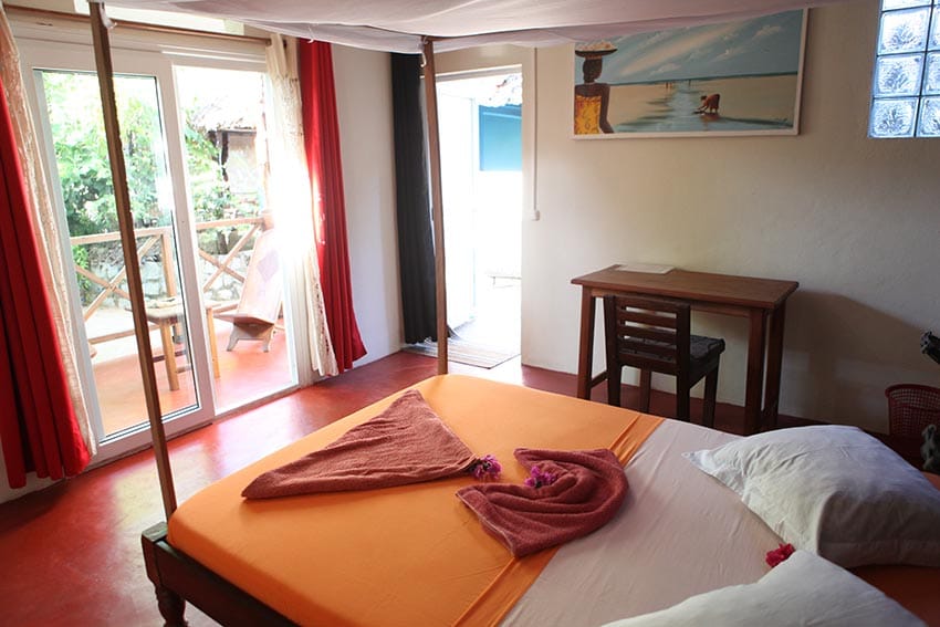 Bienvenue dans notre Chambre 10 au rez-de-chaussée avec balcon, idéalement située au cœur du village d'Ampangorinana. Cette chambre confortable vous offre un accès direct à la plage à quelques pas seulement. Bien que la chambre elle-même n'ait pas de vue sur la mer, vous pourrez profiter de la plage à quelques pas. La chambre est équipée d'un lit double avec matelas haute densité et d'eau chaude alimentée par des panneaux solaires.
