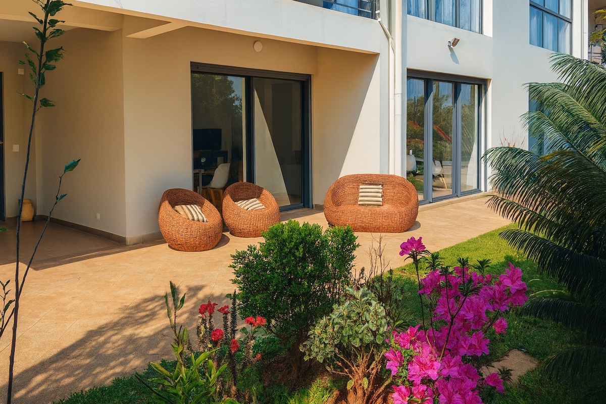 新房源T2公寓,明亮,带异国情调的花园