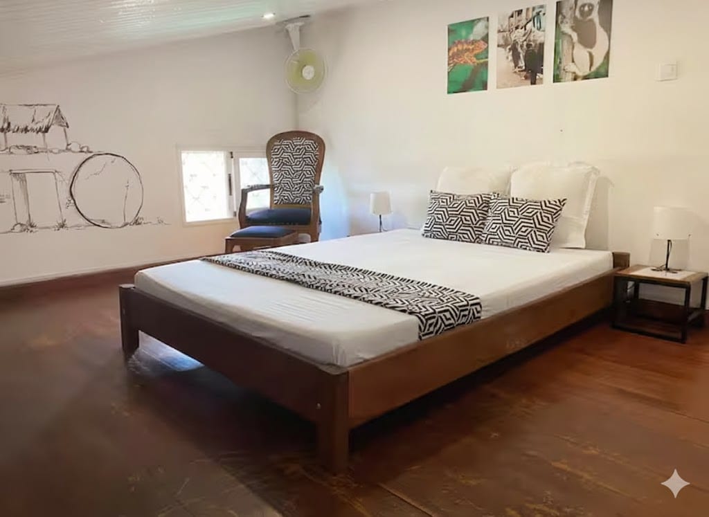 🏡 Spacious and bright ✨. 🍽️ fully equipped kitchen, 📶 free WiFi, and 🚗 private parking. 📍 Close to the city center, 🏡 calm and secure, with 👮 24/7 security guard. 🌍 Ideal for exploring Madagascar with complete peace of mind 🇲🇬🌞. 🔥 Enjoy a warm atmosphere and 🏡 personalized service for an unforgettable stay💖. 🛏️ linens provided, and 🗺️ close to tourist attractions .