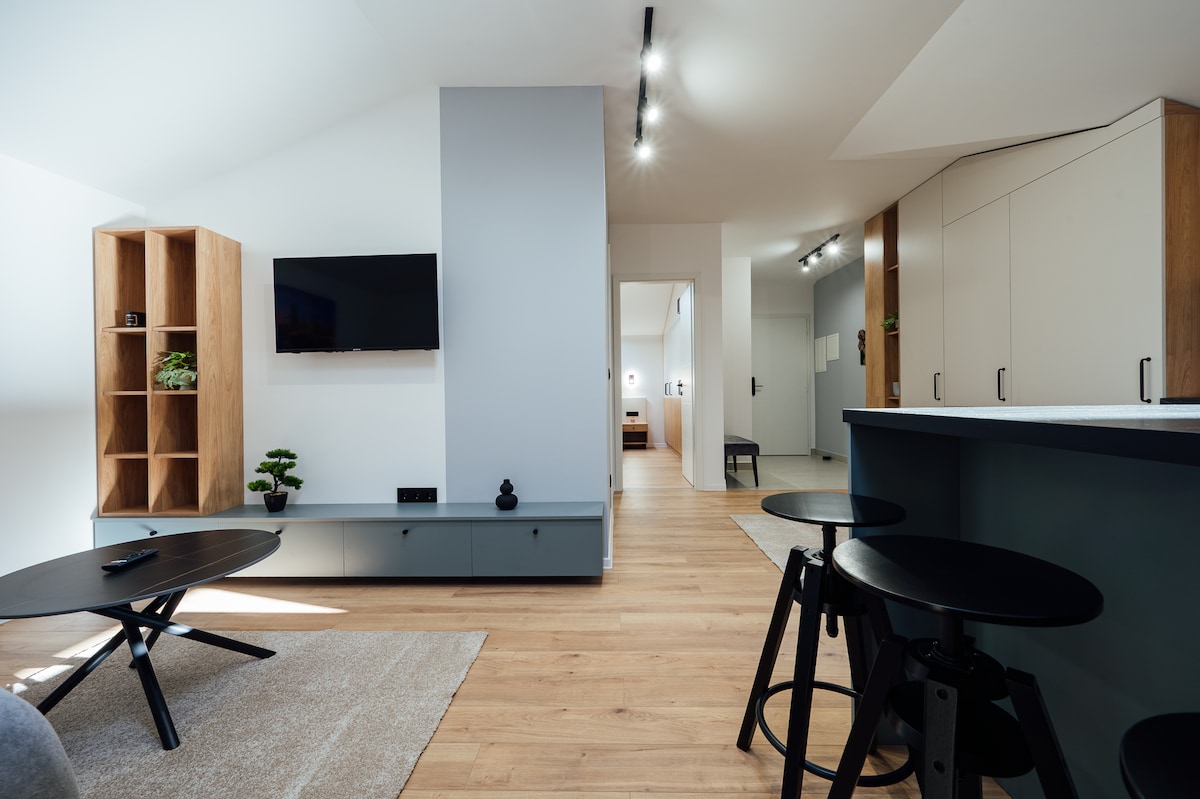 This relaxing property minutes from the city has breathtaking mountain views. Located in a new residential area overlooking Szekelyudvarhely with panoramic views all the way to Suko. Enjoy luxury and comfort with the whole family. Experience peaceful sunsets on a beautifully furnashed patio. You have the comfort of your own kitchen with everything you need, coffee and tea provided when you arrive. Wifi at no cost and crib/highchair available upon request. Outdoor fitness/park is a 3 min walk!!