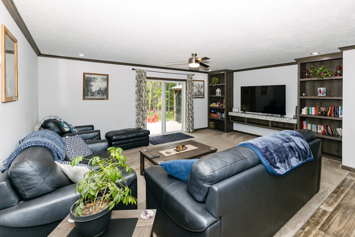 The Black Diamond Lodge is a newly curated four season haven for all! Located in the Peaks Village, a quick two minute drive to Calabogie Peaks Ski Hill or ski out the front door to the Madawaska Nordic Ski & Recreation Trails. Views of the peaks can be seen from the family room & hot tub. Snuggle up by the indoor wood burning fireplace and unwind before your next adventure! **Special Fall Promotions Live**