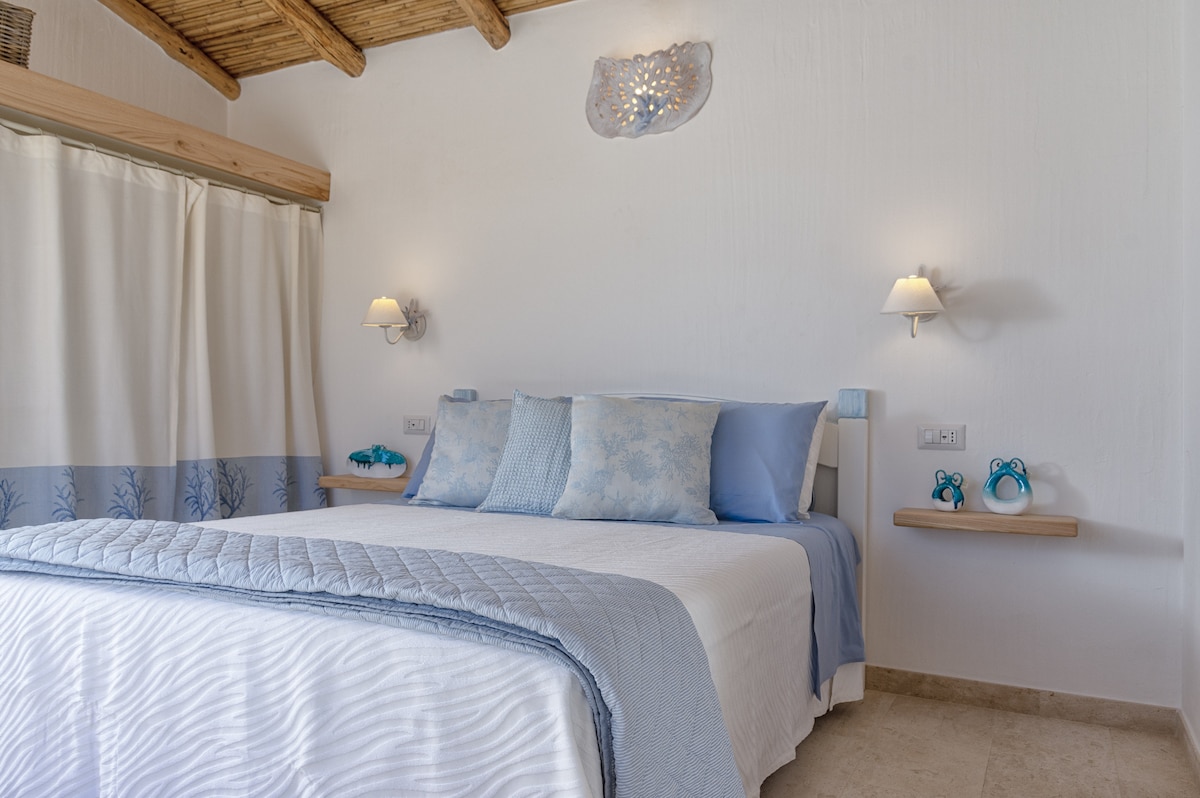 Asfodelo room è una camera matrimoniale con bagno privato, grande box doccia e terrazza vista mare.