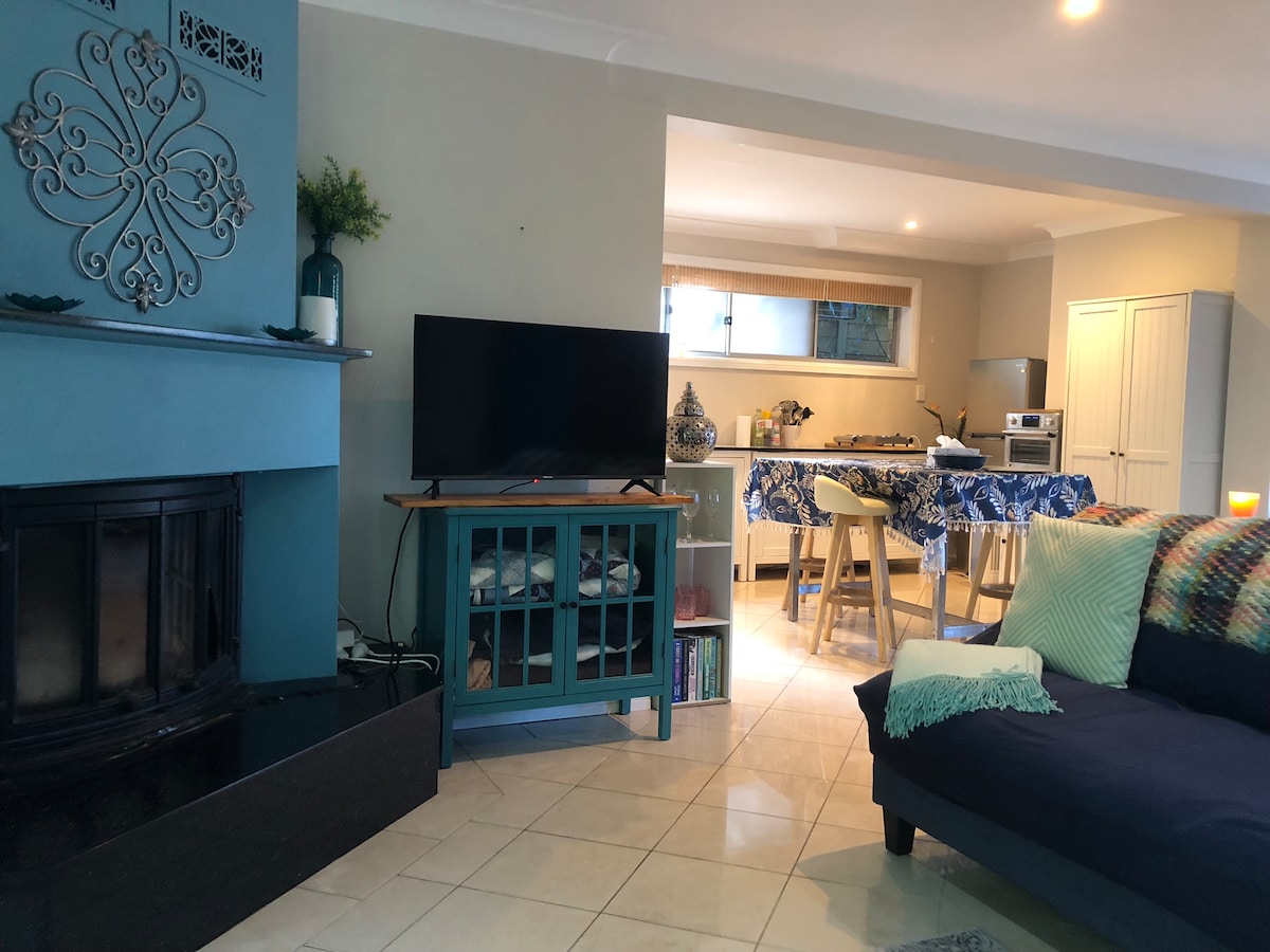 Relax in the privacy of the studio with full kitchen, luxurious queen bed with premium linen, stylish bathroom with quality towels and toiletries provided. The living area, opening to a courtyard, has a 50inch smart TV and comfy leather lounge. WiFi is free. A gas heater quickly heats the space and air-con provides extra comfort. It's a short 5 min walk to the Blue Mile walkway and the Novotel, cafes, beach and CBD or catch the free bus to WIN Stadium, UOW and Hospital.