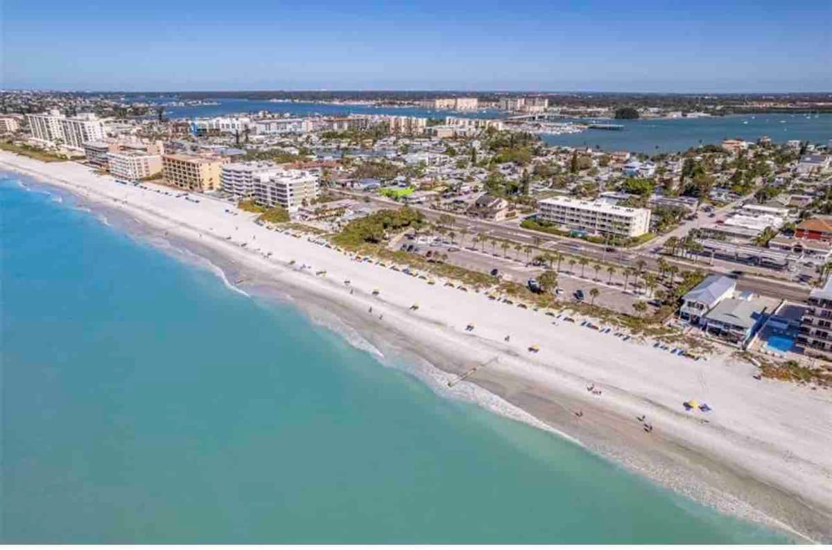 Please note, the gym, jacuzzi, and hot tub are temporarily closed(hurricane damage) Completely remodeled, beach theme decorated, a beautifully furnished second-floor condo just steps away from the white silky sandy beach! Ideal for romantic vacations, honeymoon escapes, and getaways! Located in Madeira Beach Yacht Club, a private gated community, free parking, high-speed WI-FI, TV cable, Netflix, 2 outdoor heated swimming pools, and fishing piers. Please, book at least 7 days before your arrival