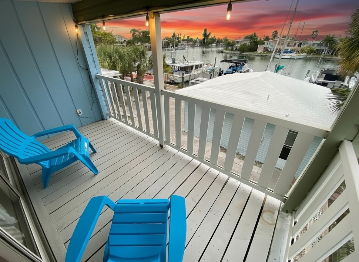 Wake up to stunning waterfront views! Unwind in this bright studio overlooking Boca Ciega Bay, sip coffee on your private balcony while watching dolphins. Highlights: • Direct waterfront views from balcony • Heated pool, spa & fitness center overlooking bay • Minutes to Madeira Beach, St. Pete, & War Veterans’ Memorial Park • Cozy king bed • Close to boat rentals, trails, and waterfront dining Perfect for romantic getaway or peaceful solo escape!