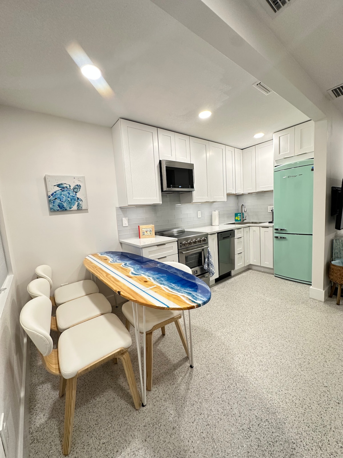 Flipper's at Mad beach is a few steps away from the sugary sands of Madeira Beach, and close by the famous John's Pass Village & Boardwark where shopping and entertainment is always great. Completely renovated with light porcelain tile, nice furniture, queen bed with memory Thempur-Pedic mattress, exquisite modern shower, tall kitchen cabinets with plenty of storage. Huge private paved fenced backyard with gazebo, great for entertainment and outdoor grilling. You will love the beach decor.