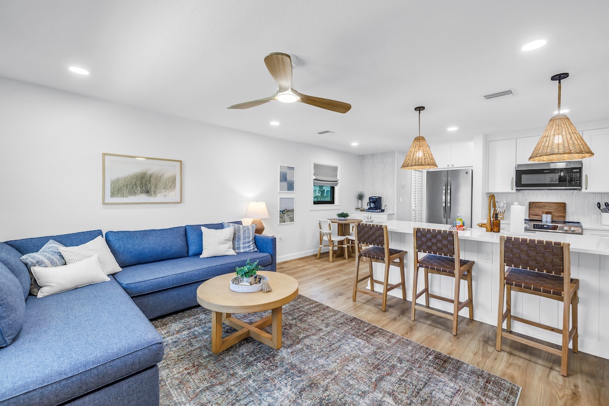 现代公寓|重新装修,直达海滩,可入住6人