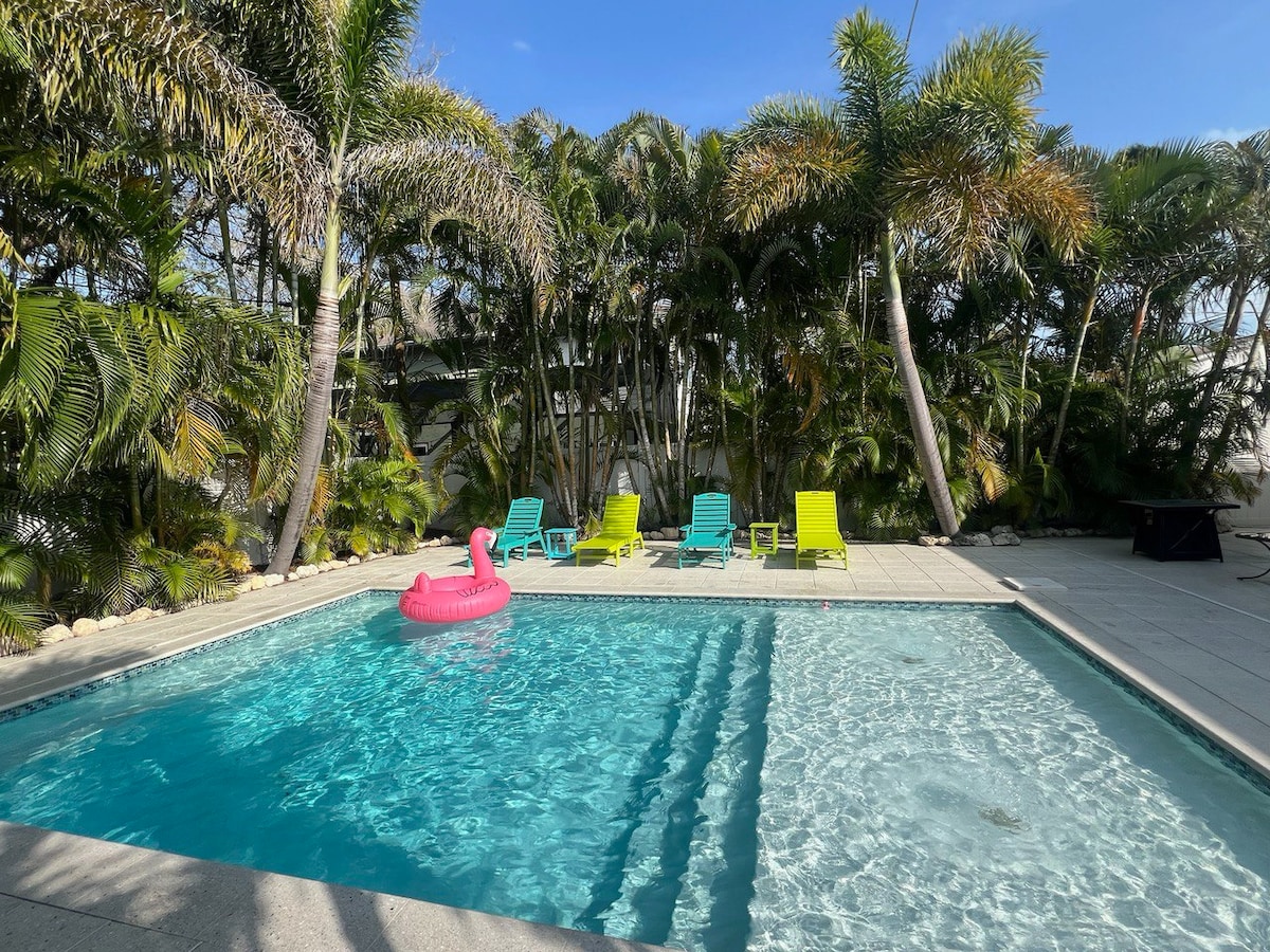 热带泳池绿洲-距离海滩5分钟-有趣的装饰!