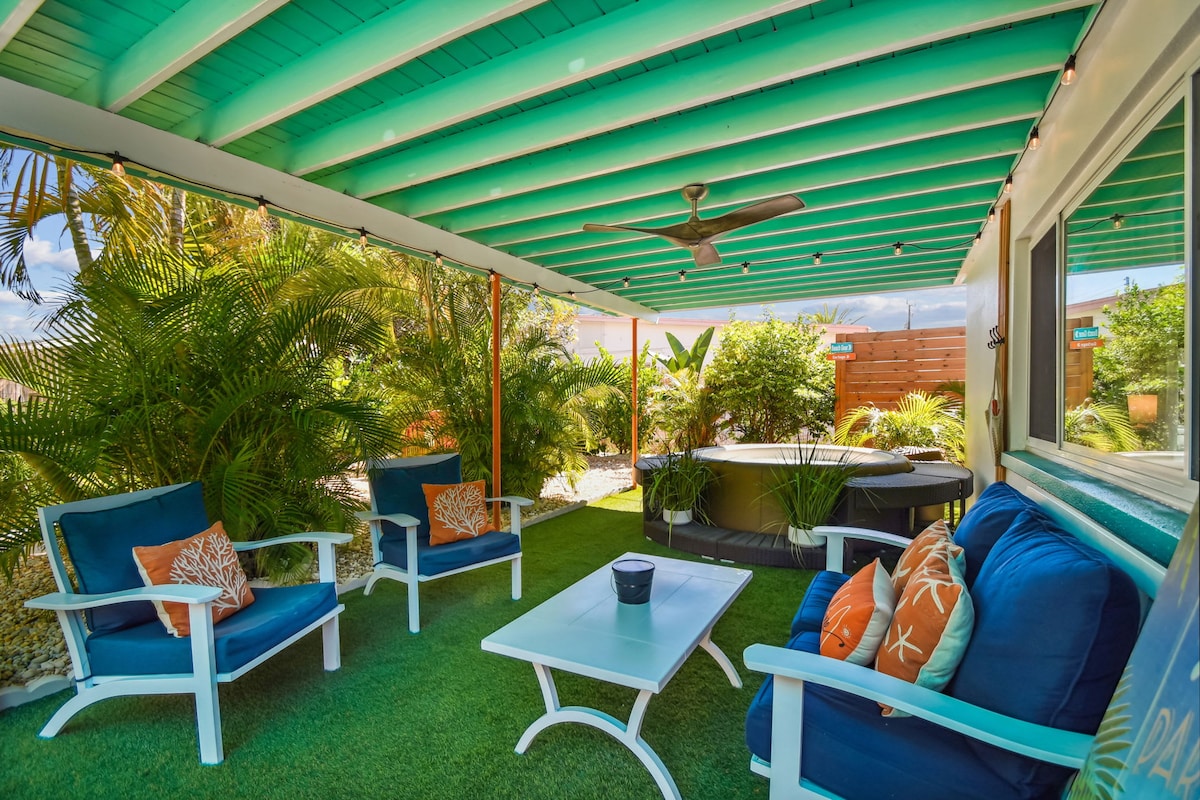 平均评分 5 分(满分 5 分),共 30 条评价距离海滩仅几个街区,配有高尔夫球车和泳池!