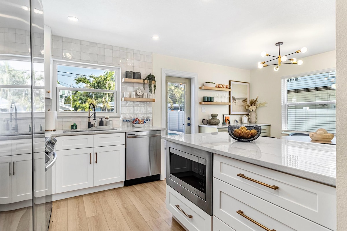天堂般的度假屋,私人后院,6分钟可达海滩
