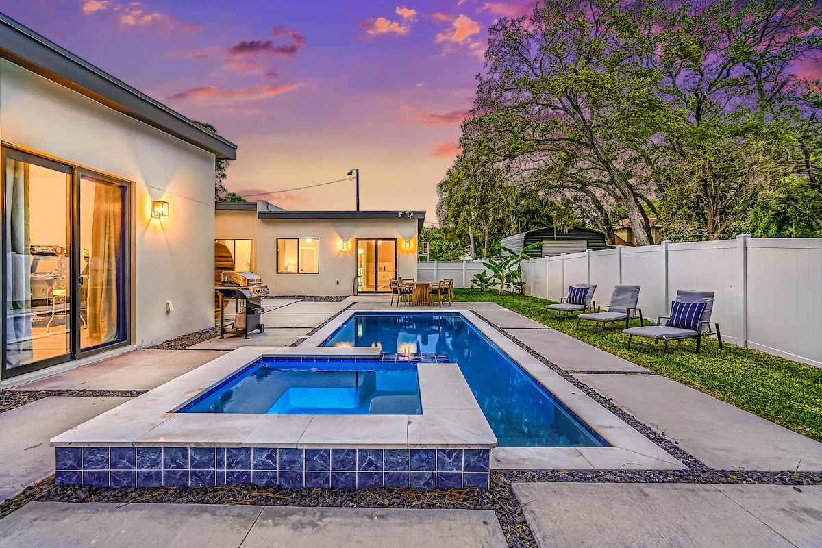 Make some special memories at this unique and family-friendly home! Your vacation home just completed a head to toe renovation. Everything ( and we mean everything ) is new! Relax and detox in the RARE 4 person SAUNA! Enjoy the HUGE 6 person HOT TUB. Soak up the rich Florida sun by the pool under the large 27 foot resort style pergola. Only 3 miles away from the closest beach 🏖️ 300 feet from the Pinellas Trail!! FASTEST WIFI AVAILABLE -668mbp Have a question?? Message me!
