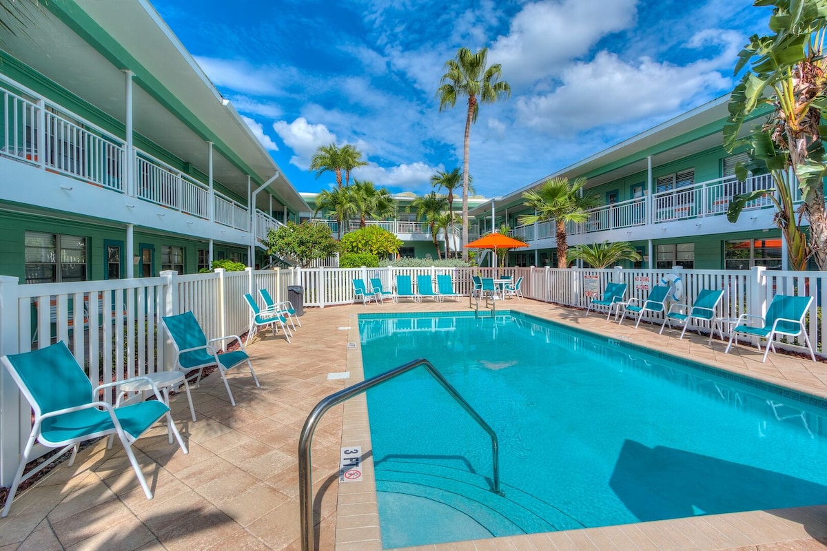 Charming Pool-View Studio at Tropic Terrace – Suite #56 2nd Floor Suite | No Elevator Welcome to Suite #56 at the Tropic Terrace Condominium Resort — a peaceful, pool-facing studio just steps from the sugar-white sands of Treasure Island, Florida. With 265 square feet of cozy comfort and classic beachside charm, this studio is perfect for couples or solo travelers looking for a sunny getaway by the Gulf.