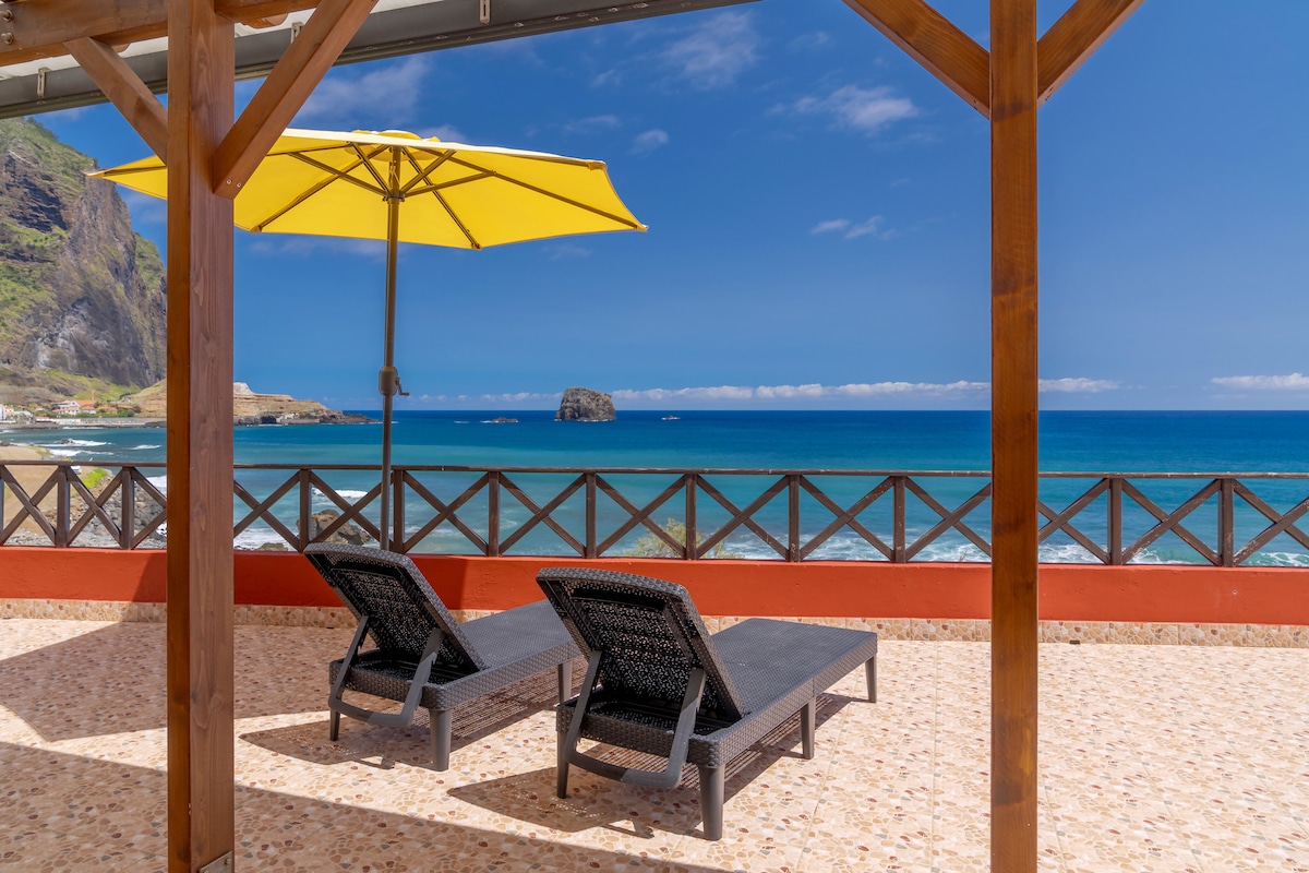 A modern and cosy apartment, close to the mountains and the sea, in the picturesque village of Ponta Delgada in Madeira Island. Perfect for a relaxing holiday or for working peacefully outdoors, ready to accommodate a family of 4 or two couples. Ideal location to explore the North Coast of the island but also at a short drive from the South Coast. On your return, at the end of the day, the property's refreshing swimming pool is waiting to help you recover.