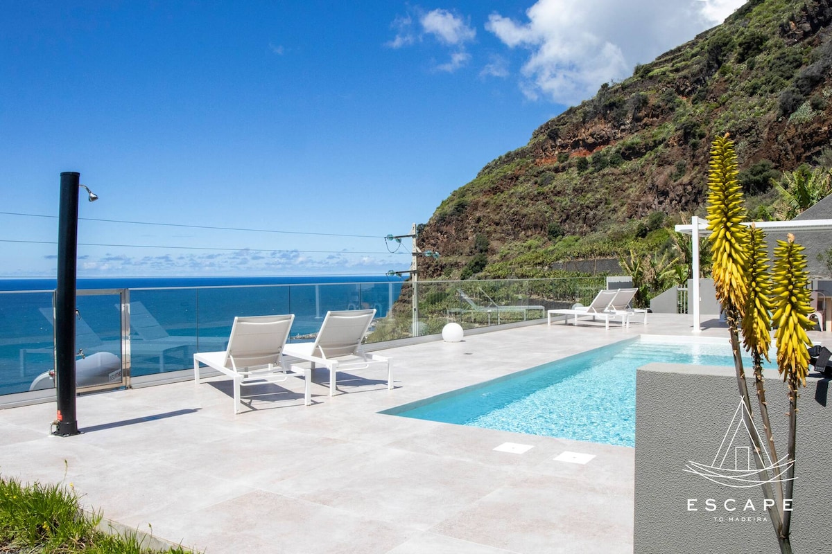 This magnificent, modern, private villa Miradouro da Baleia (Whale Watchtower) has some of the best ocean and mountains views on the island, with a infinity pool and located in a premium spot surrounded by spectacular cliffs, cropland, banana plantations and vineyards, it was carefully & tastefully restored/built in 2018 offering a unique experience of a Portuguese summer style accommodation!