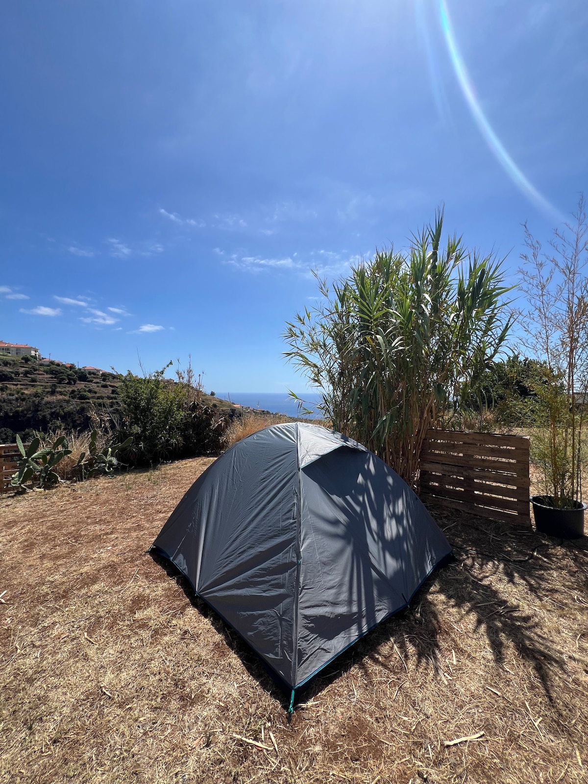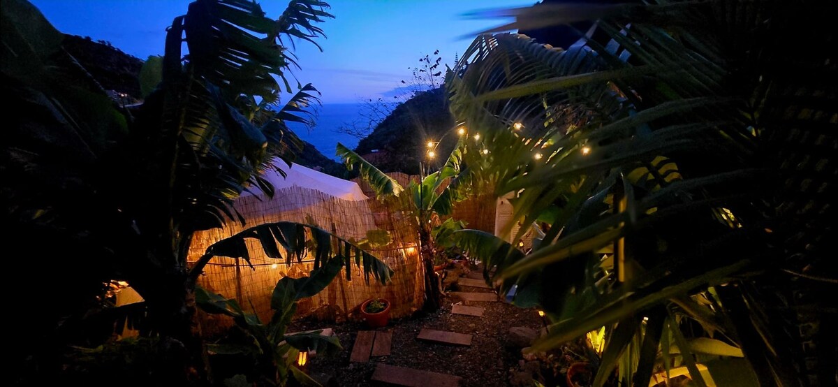 Desperte com vista mar e adormeça sob um céu estrelado! A nossa tenda tradicional, acolhedora e confortável, está situada num terreno privado no coração do Caniço, rodeada por natureza e com uma vista deslumbrante sobre o Atlântico. Este é o refúgio perfeito para casais, aventureiros ou viajantes que procuram desligar-se da rotina e viver a Madeira de forma autêntica.