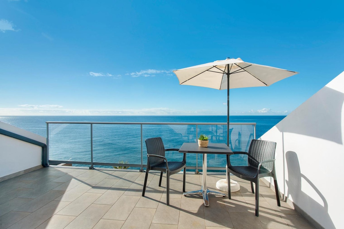 阳光明媚的海景公寓•泳池和开阔的视野