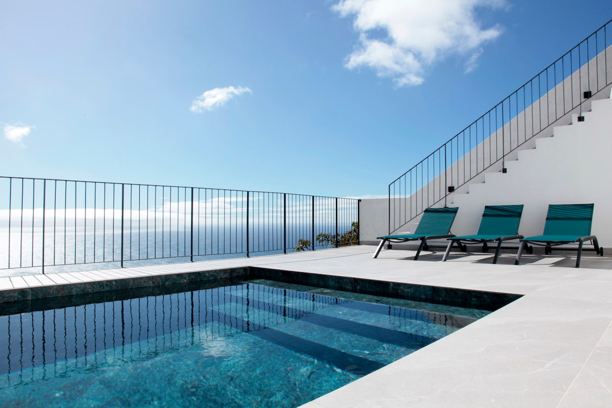 Meu Pé de Cacau is a tropical fruit garden surrounded by dramatic cliffs to the north-east and the vast Atlantic Ocean to the south-west. Four beautifully designed and sustainably built studios share the property with an infinity pool, social areas and luxurious plantations hosting hundreds of different tropical fruits, planted on traditional agricultural terraces hand crafted in basalt stone.