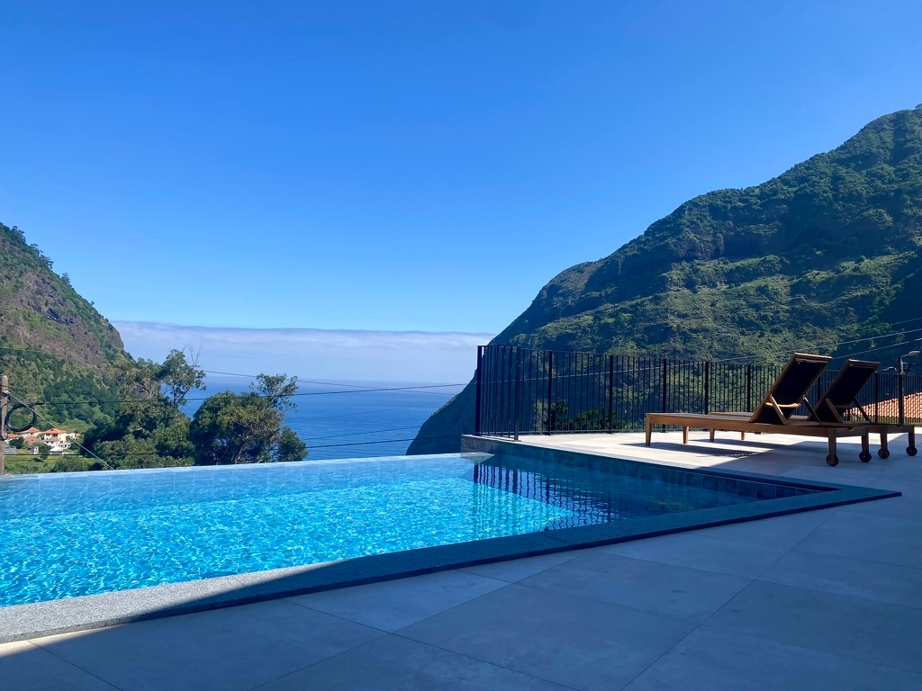 This magnificent, modern, private villa Miradouro da Baleia (Whale Watchtower) has some of the best ocean and mountains views on the island, with a infinity pool and located in a premium spot surrounded by spectacular cliffs, cropland, banana plantations and vineyards, it was carefully & tastefully restored/built in 2018 offering a unique experience of a Portuguese summer style accommodation!