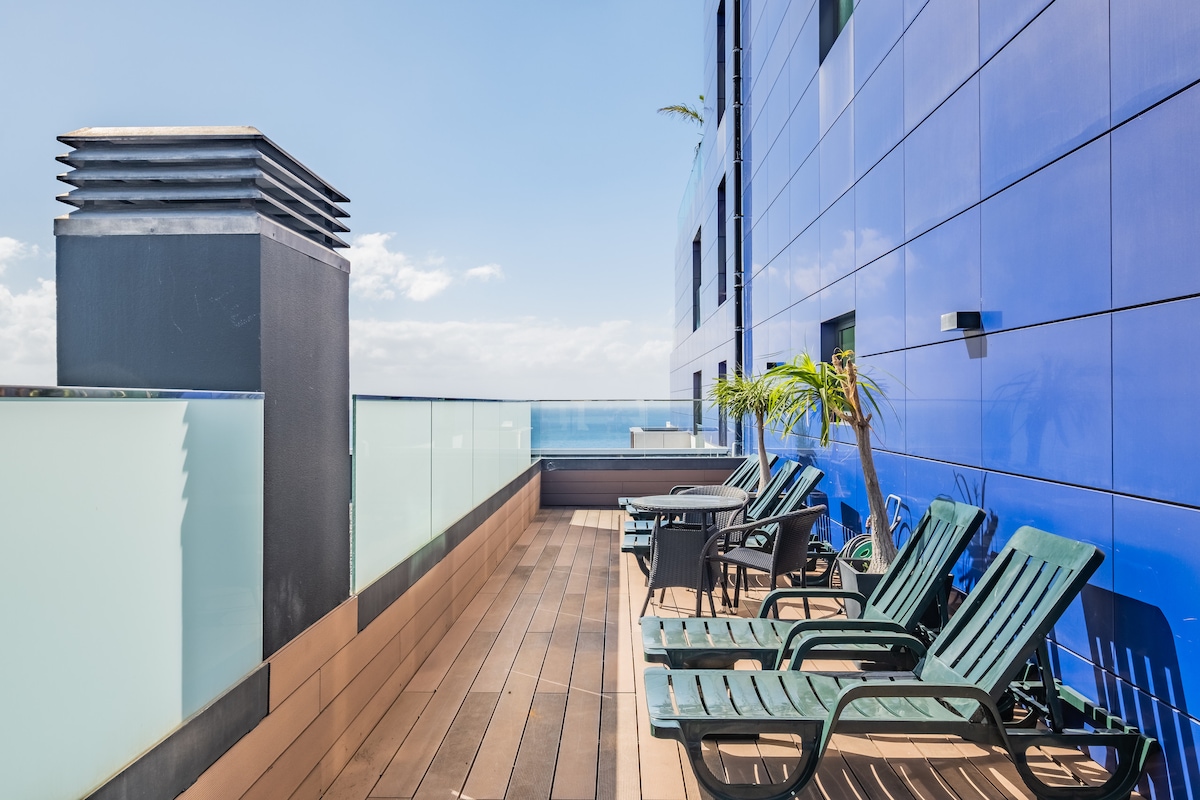 单间公寓、私人屋顶、阳光露台、无线网络。