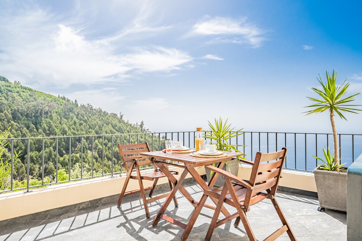 Stay in a castle carved in volcanic cliffs overlooking the endless expanse of the Atlantic Ocean! With your private jacuzzi on the terrace, to soak in and let go... This one-of-a-kind apartment can accommodate up to 4 people, with a fully equipped kitchen, a spacious living room, 2 bathrooms, and an elevator that takes you straight into the master bedroom. Just a 7-min drive from the black sands of Ribeira Brava beach & old town, with its lovely seafront restaurants and daily farmers market.