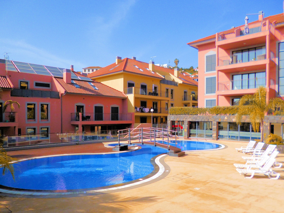 Studio junto ao mar com cama de casal, wc, sala de estar, kitchenette equipada com micro-ondas, frigorifico e fogão. Varanda com uma deslumbrante e relaxante vista sobre o Oceano Atlântico. A zona é tranquila, perto de restaurantes e bares, praia, belas paisagens e actividades para famílias. O Shopping Fórum Madeira, com hipermercado está a 5min a pé. No edifício Apartamentos do Mar, poderá usufruir de uma piscina e bar. É uma óptima opção para casais, viajantes individuais ou de negócios.