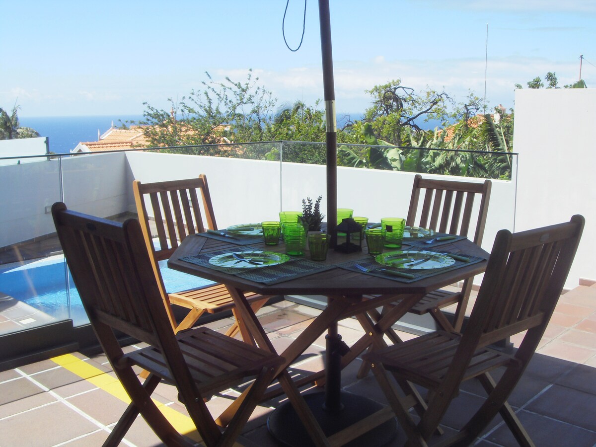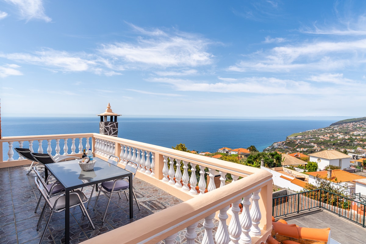 Villa Atlantica is a 2 bedroom villa, situated at the edge of the village. It is reached on foot by a 200m path from the village square. It is 20m above sea level and its private terrace gives an uninterrupted 180 degree sea view over the Jardim do Mar surf break and along the coast to Paul do Mar. Facing West it enjoys spectacular sunsets and moonlight seascapes. It shares a swimming pool and garden on a slightly lower terrace with two adjacent houses, Villa Oceana and Casa das Pedras.