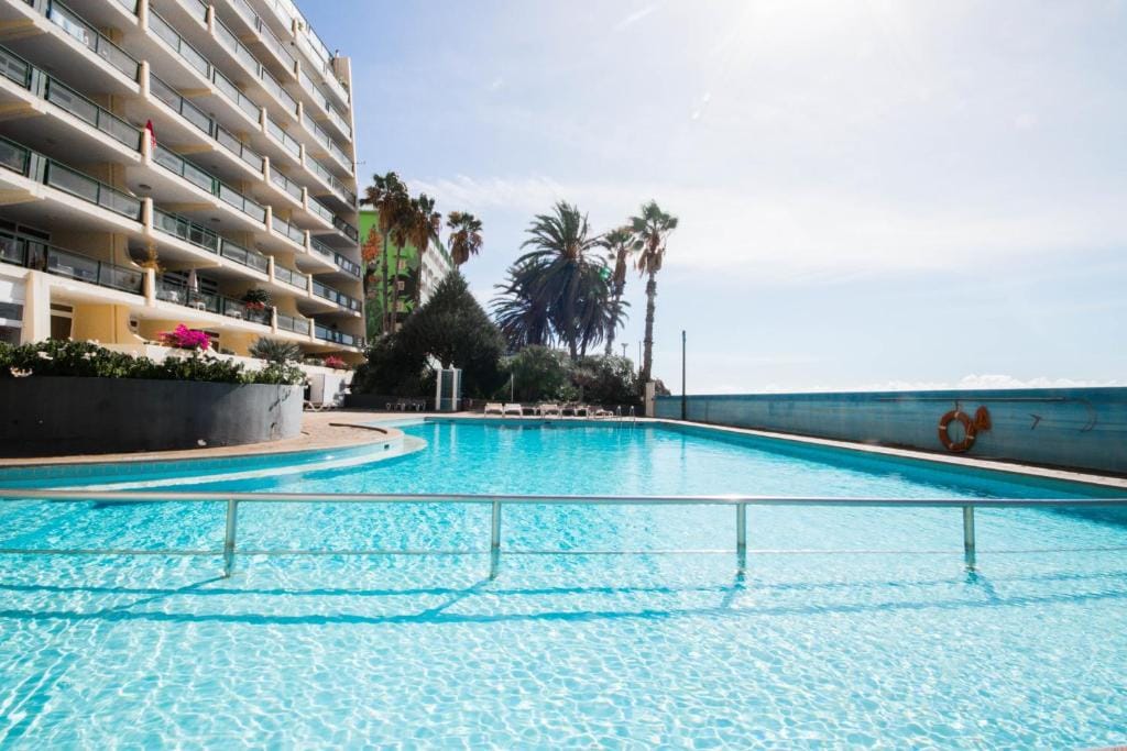 Listen to the sound of the pebbles flowing back and forth into the ocean...This 80 sqm is very spacious. Enjoy the warm sun and natural light from your private balcony. Relax at the pool on the sun loungers..walk down the steps onto the beach. You can work comfortably with high internet connection. Come to this apartment to unwind after a day of site seeing or walking and take in the magical sunsets on the ocean We manage 8 identical 1 bedroom sea view units on Airbnb