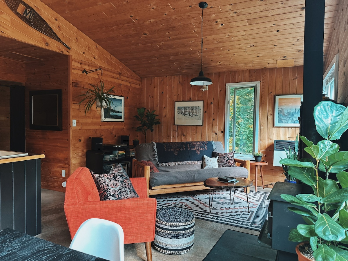 A peaceful, feel good place. Renovated rustic modern A-frame on Lake Superior's scenic south shore. Surrounded by evergreen and birch trees in an idyllic woodland setting. Enjoy walks to the beach, breathtaking sunsets and beach bonfires, kayaking the famous seacaves, biking, hiking to waterfalls, shopping for vintage treasures or just relaxing/stargazing in the beautiful private backyard. A perfect home base for exploring the Apostle islands, Bayfield and Madeline Island.