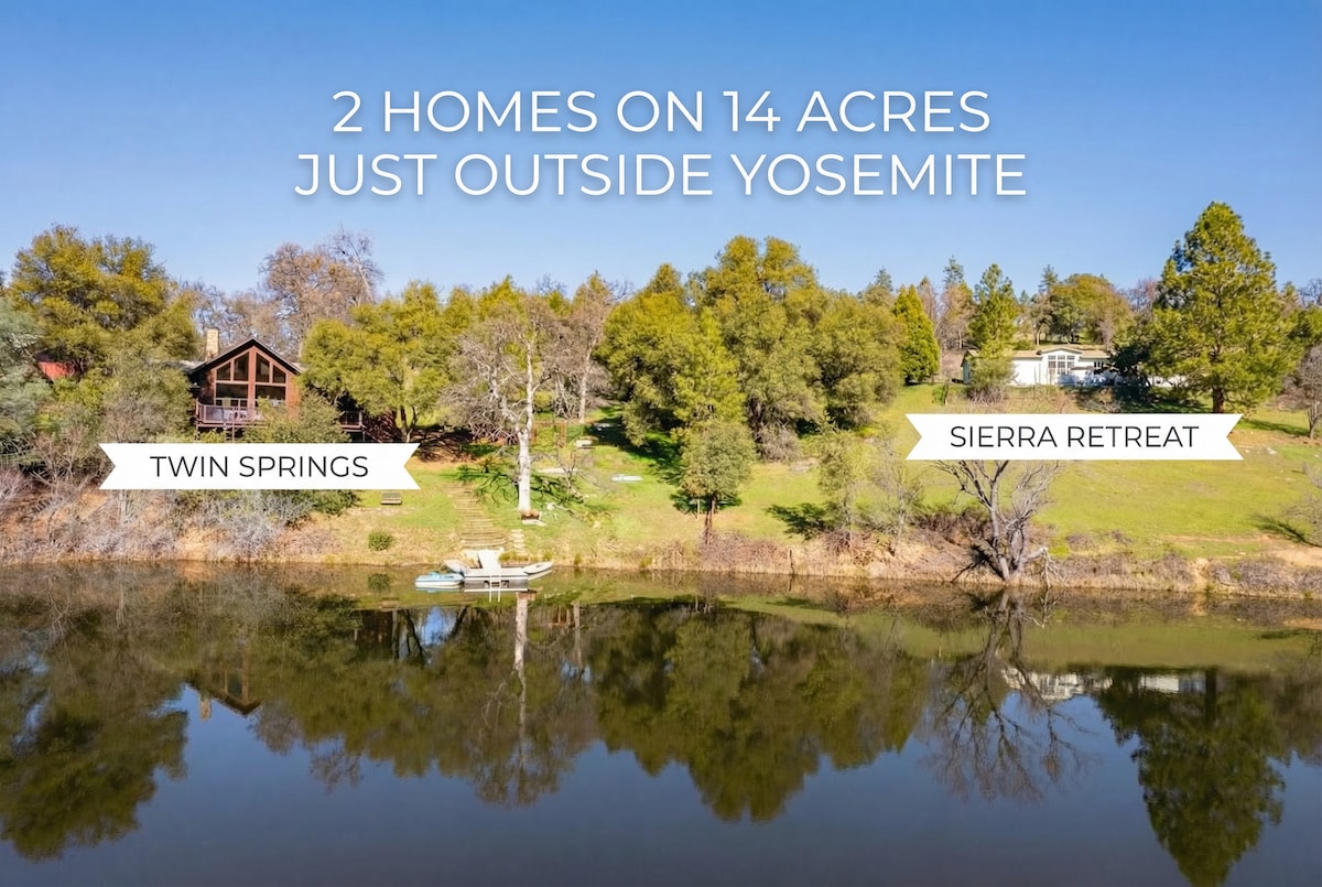 约塞米蒂度假屋,可容纳14人:2套房源,私人湖泊
