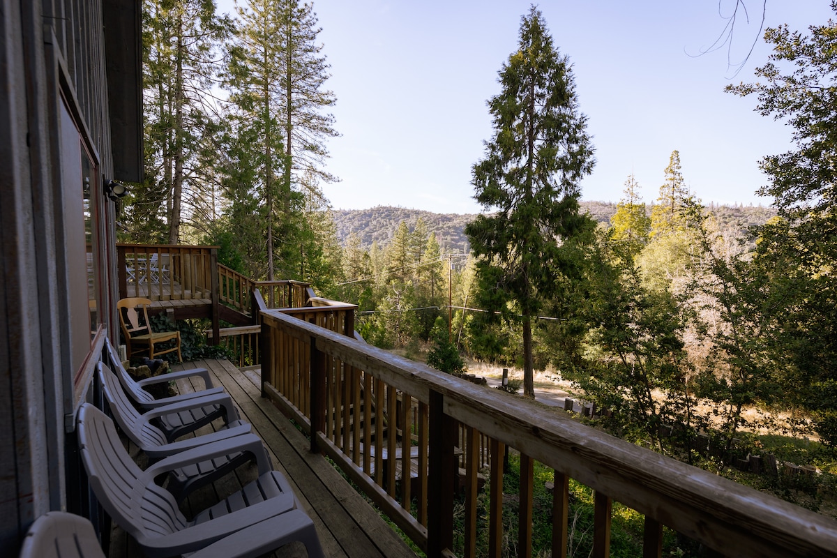 Just off Highway 41 and near the south end of Highway 49, in the heart of Oakhurst. The south gate to Yosemite is just 12 miles up the road. Bass Lake is a short 5 miles away. Within walking distance of YARTS* stop, and all the amenities of town: 2 large grocery stores, pharmacies, gift shops and more. *Public transit to Yosemite operates seasonally