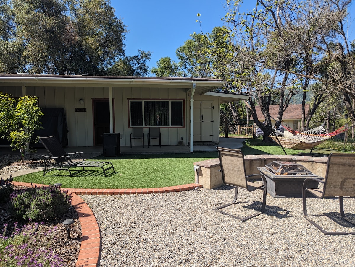 Located 30 minutes from the South entrance of Yosemite, this 1 bedroom, 1 bath unit with a living/dining room, kitchenette and outdoor area with swing seats, hammock, grill and bar, is a great basecamp to explore the area. We are located 5 minutes from downtown Oakhurst, which has all of your grocery and dining needs. 19 miles-Yosemite Entrance 11 miles-Bass Lake 4 Miles-Oakhurst Tips on trails and local attractions from former Yosemite Rangers.