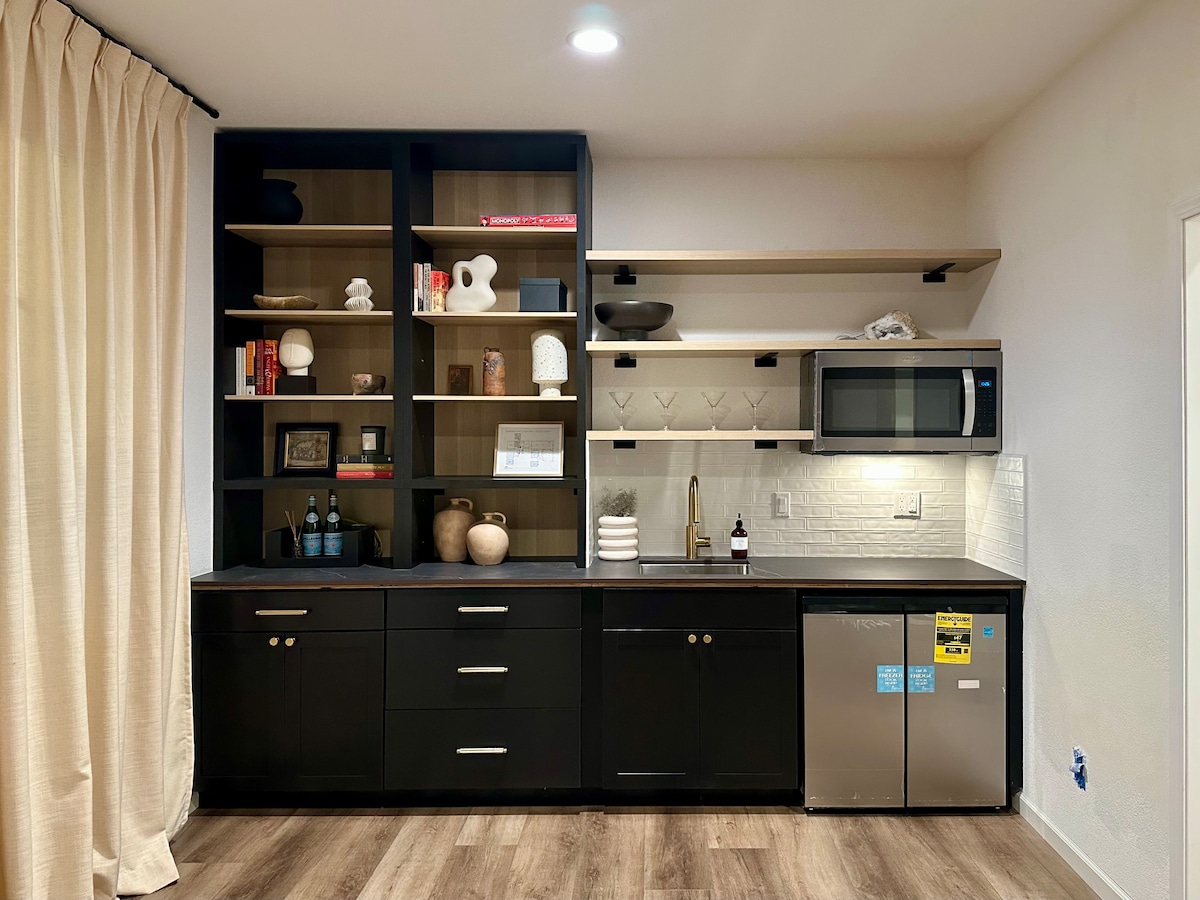 Enjoy this quiet and private guest suite with a dedicated entrance to yourself. Kitchenette is equipped with basics, including a microwave+, a one burner convection stove top, a full size refrigerator with ice maker, and a portable kitchen island on wheels with a butcher block. This mini-like apartment is located within a newly constructed neighborhood and is in close proximity to a private park/sports complex.