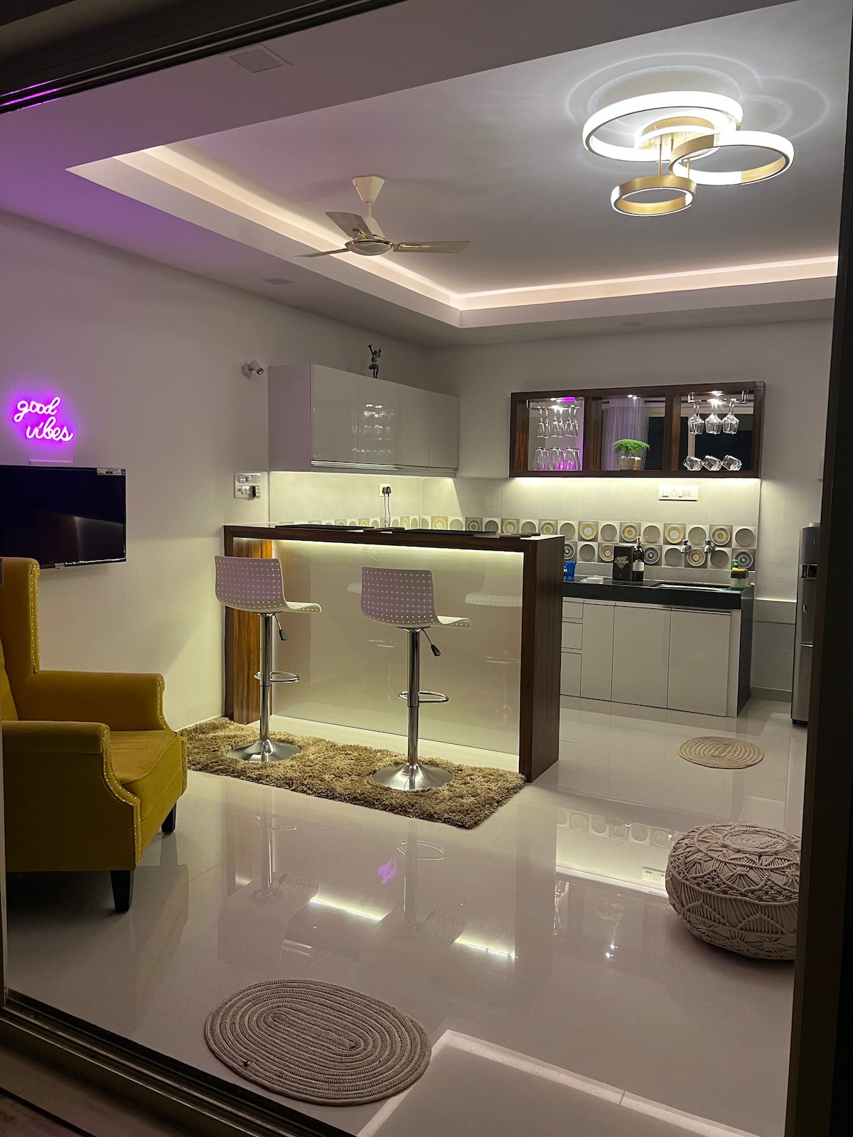 Casa de Davi is a chic & contemporary one bedroom apartment nestled in a premium gated community with a private terrace for you to sunbathe, workout, mediate, relax or have a BBQ! The apartment is fully-furnished and tastefully decorated. It is located in the beautiful, quaint and peaceful neighborhood of Benaulim, surrounded by lush greenery and a beautiful beach close by. The community is part of a resort, covered parking and 24hour security.