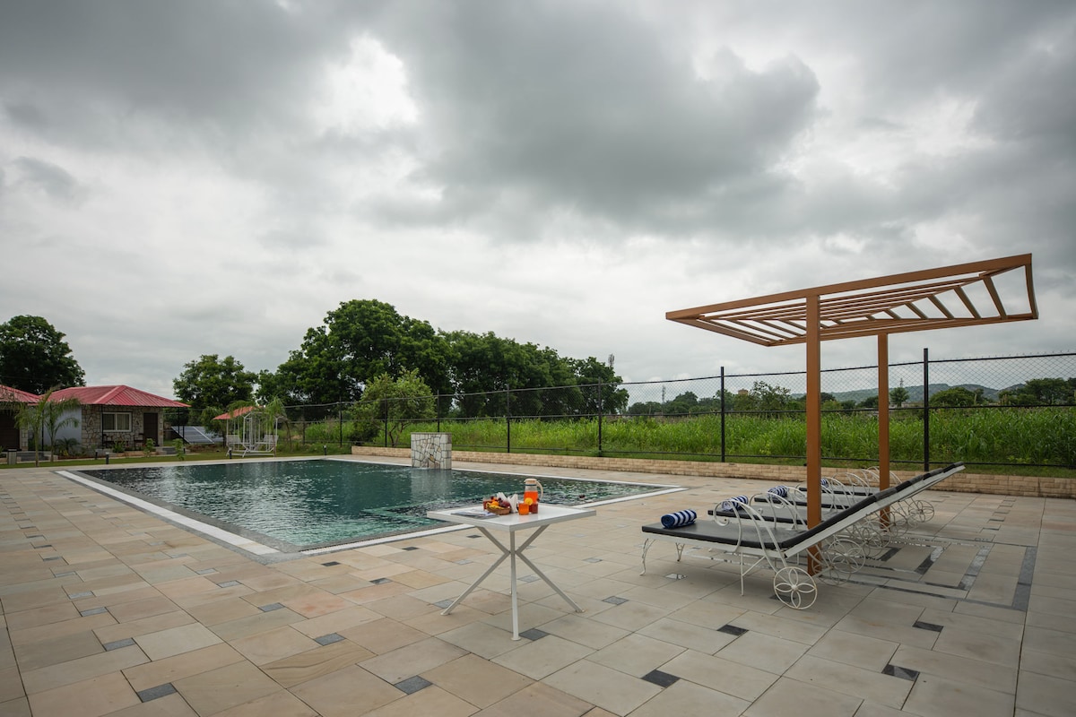 Ever dreamed of a perfect getaway where charm meets comfort? Wildwoods Stone, a dreamy retreat in Sawai Madhopur is your go-to villa in Rajasthan. These enchanting stone cottages, adorned with sophisticated white interiors and wooden touches, offer a serene sanctuary. Outside, a massive pool with a kids' section and a cosy bonfire setup await your enjoyment. The sprawling 3000 sq. ft. lawn and open garden invite you to unwind and explore.