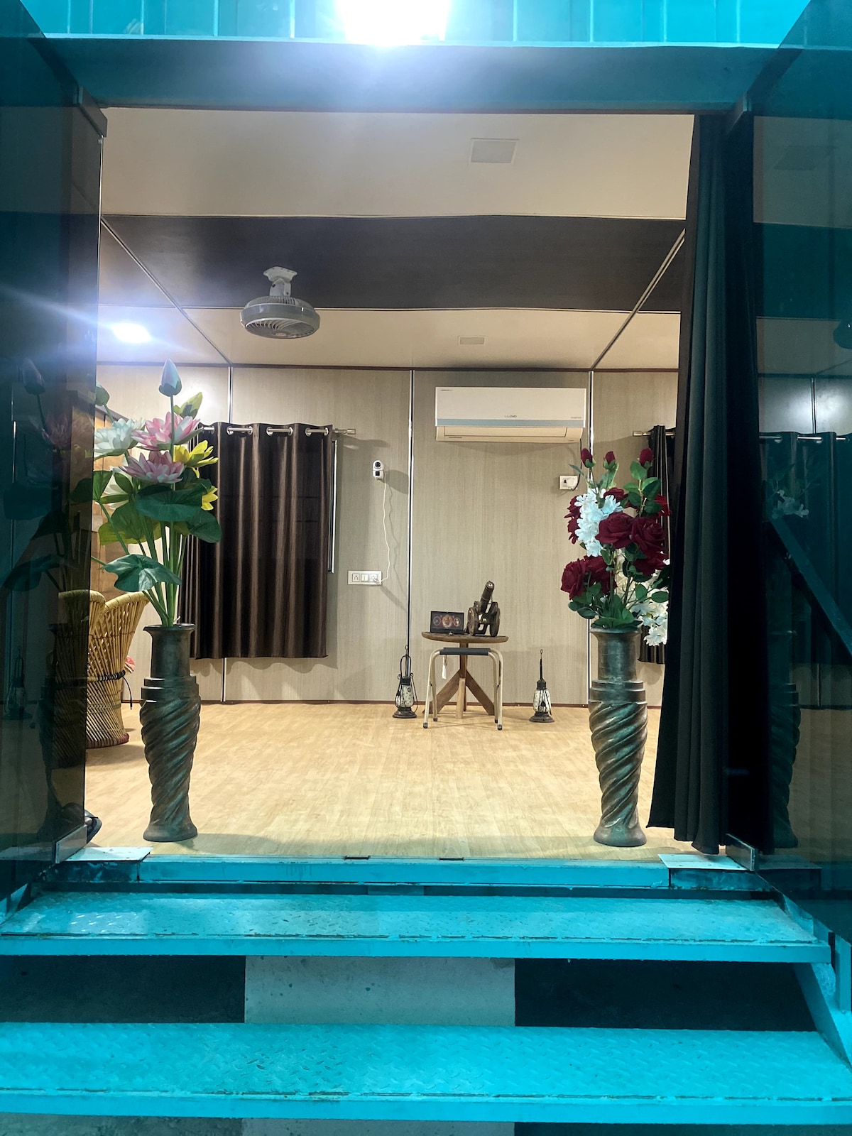 Welcome to The Saryu Vatika Homestay, Ayodhya — a third-generation family home on Rampath, lovingly built in 1990 and newly refurbished for modern comfort. This cozy 4-bedroom, 3-bathroom ground-floor bungalow offers AC rooms, Wi-Fi, Smart TVs, a kitchen for making tea/coffee, and gated parking. Enjoy full home-cooked meals by our in-house cook on nominal charges. With a 24×7 caretaker and close proximity to Ayodhya Airport, it’s your perfect home away from home.