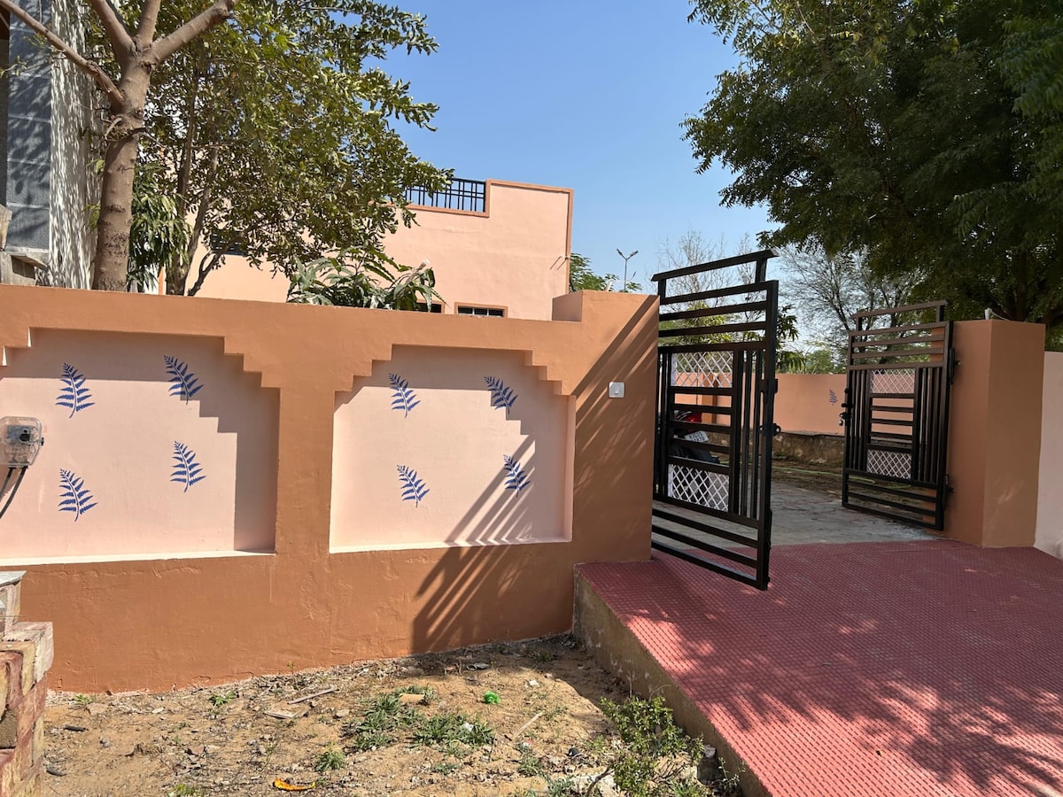 Escape the Jaipur chaos without leaving the city. Omkanta Farms is a sprawling 3,000 sq. yard private estate designed for those who value privacy, nature, and a touch of luxury. Whether you are hosting a family reunion, a sundowner by the pool, or a quiet pet-friendly getaway, this is your exclusive sanctuary. Enjoy total flexibility with food. Use our fully equipped kitchen or hire a local cook, or order from Jaipur’s top-rated restaurants via app. Barbecue arrangements can be made.