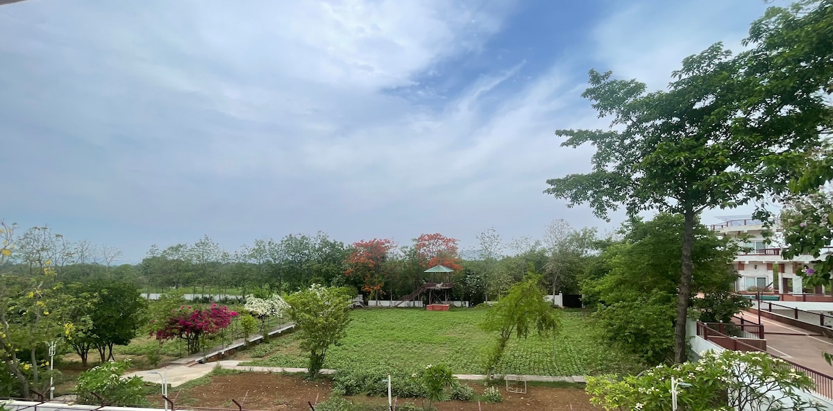 Get a step closer to nature, comfort and convenience at our charming Bluebell cottage! 10 minutes from Airport, 20 mins from Charbagh railway station, right behind the renowned Lulu Mall, stone throw away from the Palassio Mall, a mere 500 meters from Medanta Hospital, our cottage is strategically positioned for an unparalleled stay. Located in the heart of Sushant Golf City, it serves as the ideal hub for your visit to Lucknow! Along with a king bed, you get two additional folding beds.