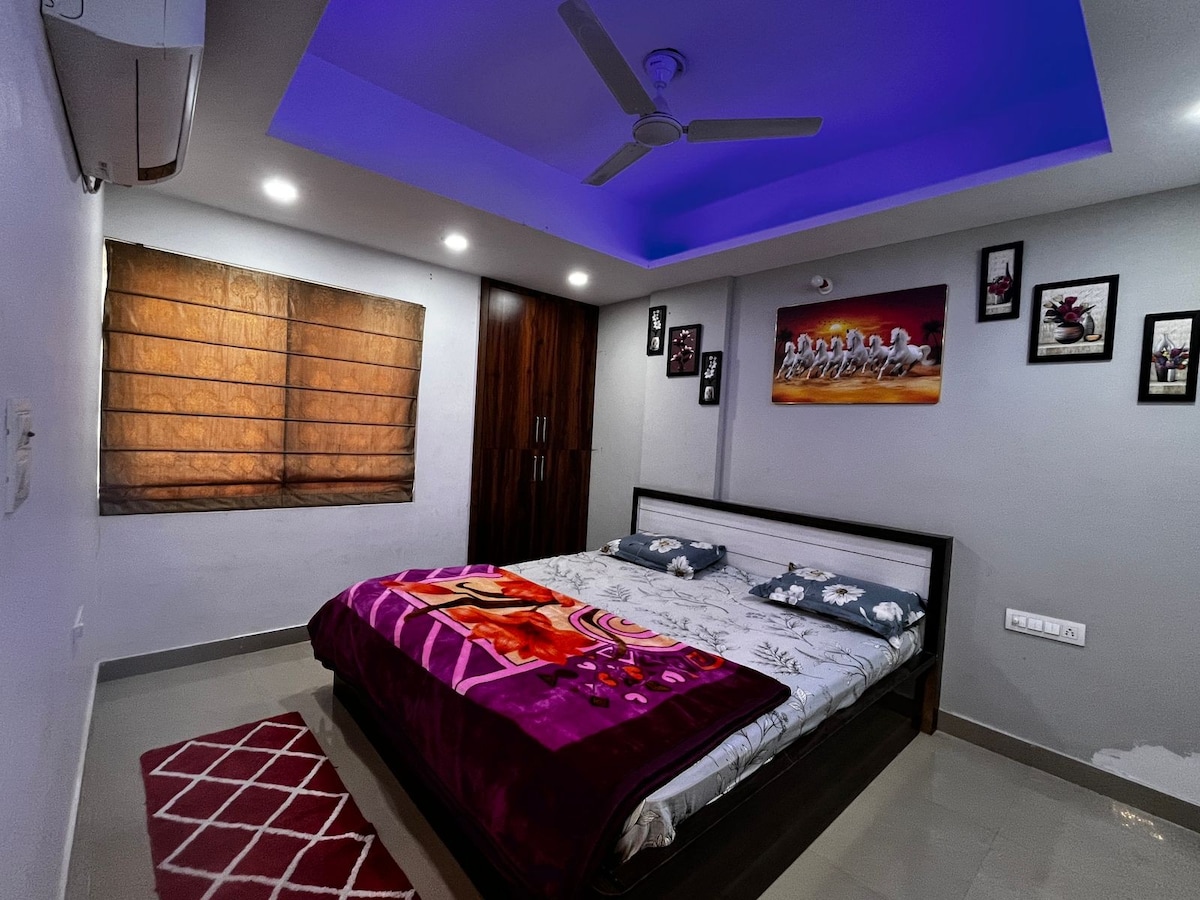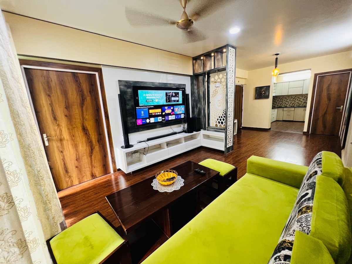 2 BHK Luxury Apartment with Spacious Interiors and Three Large Balconies Experience comfort and relaxation with your family and friends at this luxurious 2 BHK apartment. Fully furnished and equipped with modern amenities, this peaceful retreat is designed for the discerning traveler. This stylish place to stay is perfect for group trips. And all facilities available like a Home. We provide fully clean and hygiene product for our guest’s comfort.