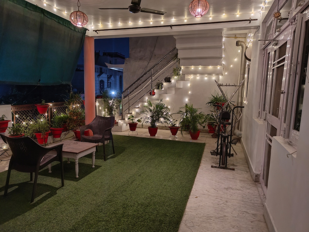 PLEASE READ THE HOUSE RULES BEFORE BOOKING. Ideal for family, women/solo travellers & couples - safe, peaceful, and homely. A subtle & peaceful house enjoy a spacious green patio, two AC bedroom, kitchen with essentials, workspace, Wi-Fi, and carrom for recreation. This is a family home, not a hotel. We provide a clean, comfortable and homely stay with basic amenities, but not hotel-like services. For security, the main gate closes at 10:30 PM. NO LOCALS & VISITORS from Lucknow are allowed.