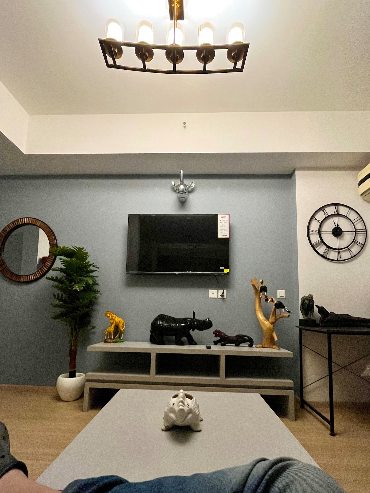 Our one bedroom suite consists of a large bedroom and a separate living room. The bedroom is connected with a washroom and a large balcony. Our living rooms is connected with an open kitchen, the kitchen is fully equipped with all the amenities such as microwave, gas Stove, refrigerator and all the Utensils and glasses, we also have a mini bar on our kitchen wall. The living room also has a 4 seating dining table. The is a sofa which turns into a queen size comfortable bed for extra guests.