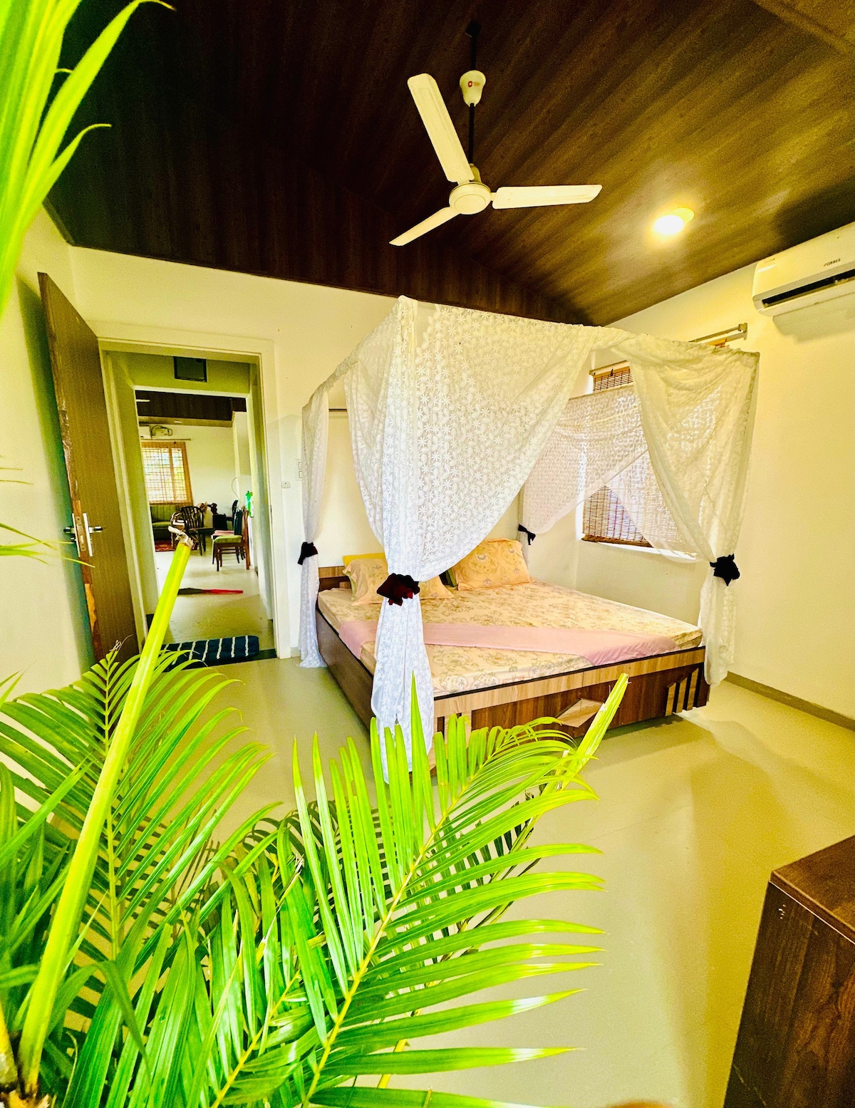 Welcome to a 5-star boho haven, where fresh air, hygiene, and sunlight create a rejuvenating stay. Enjoy a super comfy bed, ultra-tidy toiletries (towels, hand towels, face towels), and a spotless bathroom. Work with ease at a spacious desk, extra monitor, and a super comfortable ergonomic chair—perfect for long hours. Relax on the balcony with a great view and enjoy fresh, healthy meals from our in-house café. Positive vibes to die for! Book now!