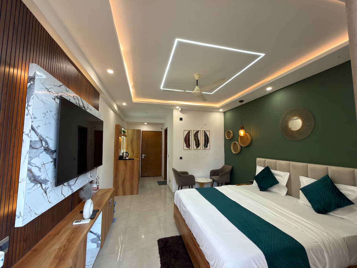 An artistic space thoughtfully curated .Tucked away from the hubbub of the city.This luxury two bedroom apartment comes furnished with a spacious living room designed to Netflix & Chill.Get lost within yourself as the aesthetically lit corners of the apartment embrace you in a warm hug. Enabled with all major amenities and comfort , We have kept everything in mind from chic high end bedroom, To the best Netflix n chill setting.This apartment doesn't fail to impress its guests.