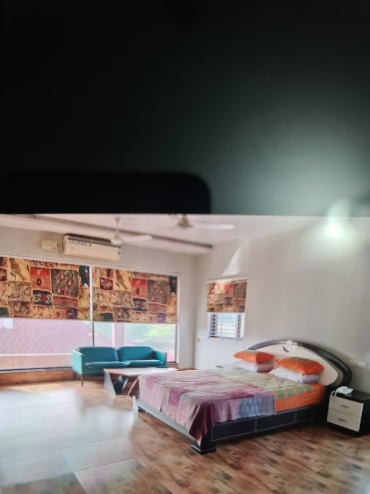 It's a Separate Two room's kitchen(Studio ) portation which will have its independent entrance, you can enter in a Hygiene Family room without having to touch anything with comforts like home, breakfast buffets and bellhop service Details: Bed Room:One one queen size bed with 6” soft mattress Living Room: One Heritage Bed 4X6 size with mattress Heritage writing desk with chair Facilities: Kitchen with Waterproofing machine, Fridge Attached toilet with electric hot water geyser Free